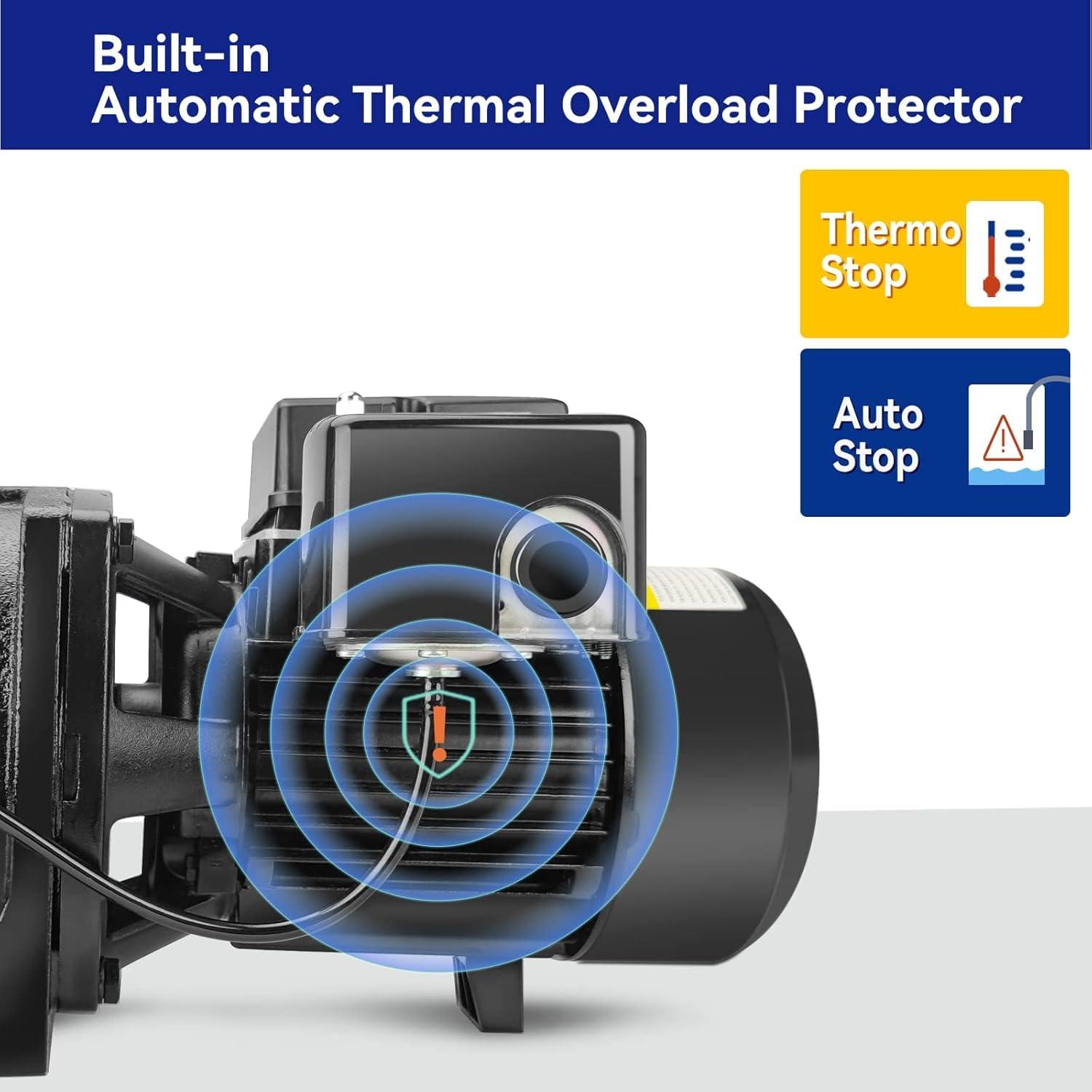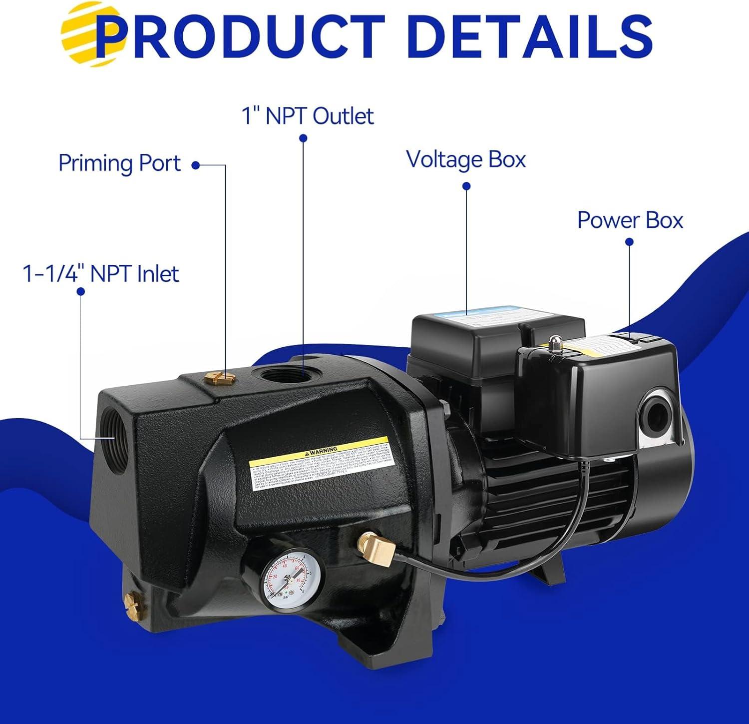 Powerful Suction: 1HP electric motor can provide plenty of water flow with strong suction power, designed for wells up to 25 feet deep.